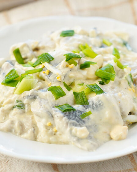 Filety śledziowe w kremowym sosie śmietanowym z jajkiem na twardo i cebulką. Prosta, smaczna i efektowna przekąska idealna na każdą okazję.